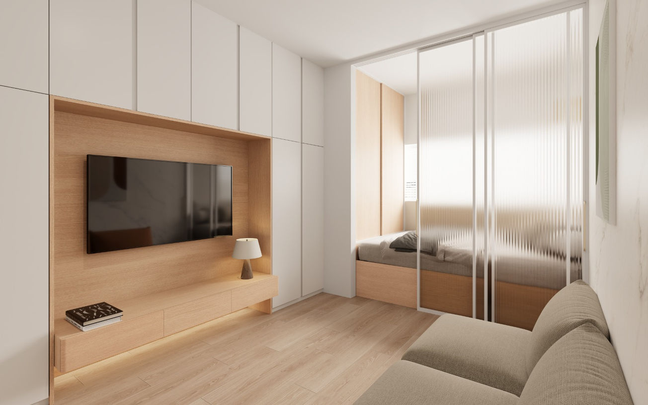 4.1 Newly performed scraping of the ceiling and wall surfaces in the living/dining room and bedroom, application of sealant, three coats of plaster, and three coats of 5-in-1 latex paint *Repair of cracks caused by shrinkage within one year after completion of painting works is included
